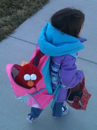 Her best friend was a guy named Elmo Live! The exclamation point isn’t there because I’m excited about this slightly obnoxious creature that talked and sang. It’s part of his name; a marketing gimmick the purpose of which eludes me. EL! went on walks, rolled in the dirt, ate supper, and even went to school.