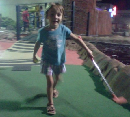 Three seconds after this picture was taken, she hurled that golf club into the water. Back to the stuffed animals… as you placed the stuffed animal in her hand she would immediately flip it back over her head and continue past you without looking back. The first time time she did this I was rolling on the floor. I instantly became more popular than a box of donuts at a Weight Watchers meeting. Ru, you see, was a ham. When she realized I, or anyone else, found her antics amusing, she would triple her ridiculousness. Thus, she became expert in the art of stuffed animal launching, regularly arcing the poor critters five feet up and ten feet back, adding a little head bob and high knee kick for emphasis.