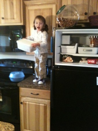 Climbing the kitchen counter to get your own ice cream is another bad idea.
