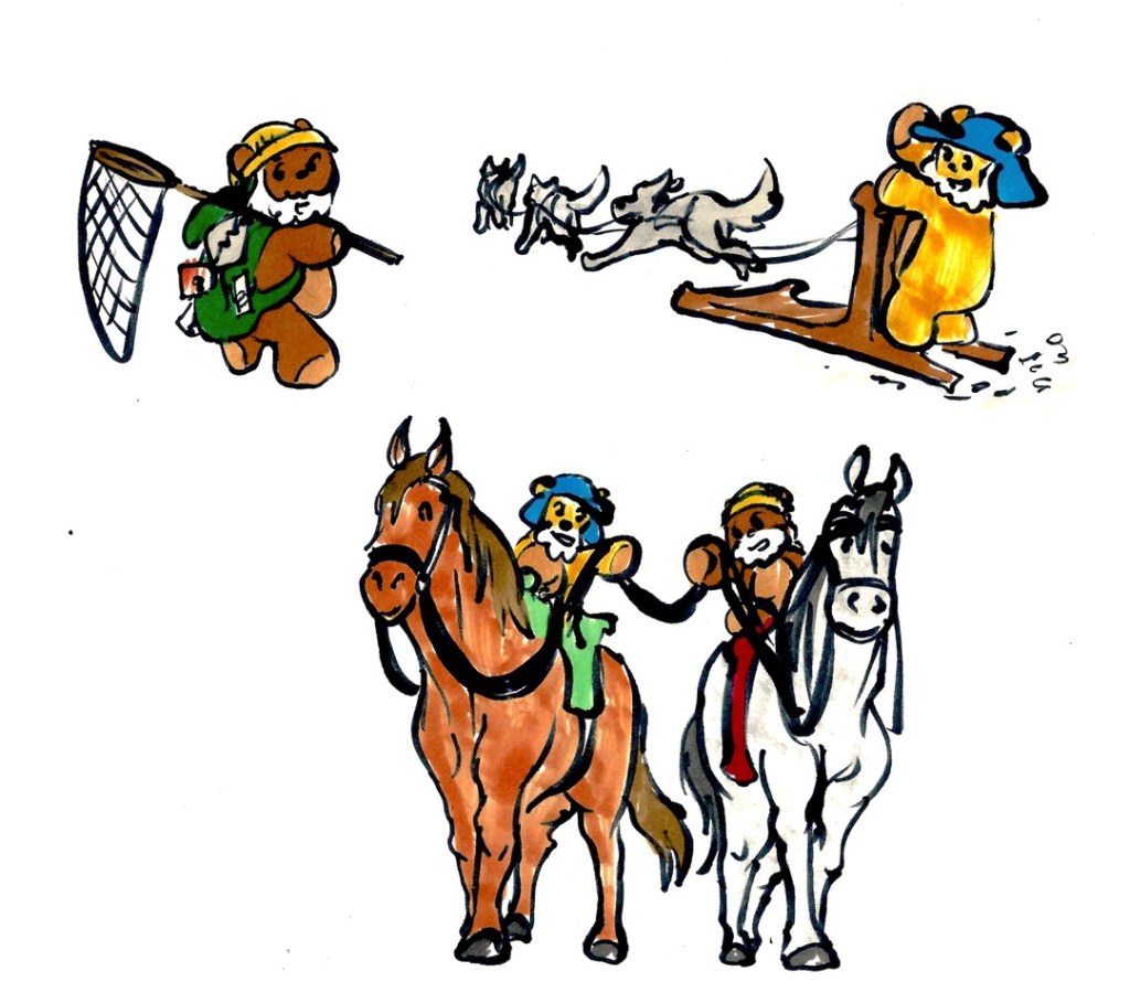 Before moving in with Dad, Teton was a trapper, and Denali was a dog sled musher. In the summertime, they came down to the valley to work as cowboys. They still travel back to their homeland often to do those things. In case you’re wondering, they’re both excellent on horseback despite holding the reins with their paws instead of human hands.